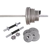 CAP's RSG-110T- 110 lb barbell weight set includes 1 x 5' standard bar, 2 x standard dumbbell handles, 6 x 2.5 lb, 6 x 5 lb and 4 x 10 lb plates. 4 spinlock collars included as well. Plates are made of solid cast iron. Bars are made of steel. The ideal set for home use. Dumbbell handles and plates can be used for various arm exercises while the 5' bar and plates can be used for overall strenthening and sculpting of all muscle groups. Warning: This product contains one or more phthalate chemicals