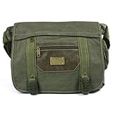 Orignal From: Green with Brown Trim Canvas Messenger Bag - great for commuters - students or professionals - light weight - Main compartment 14" x 11" x 4"